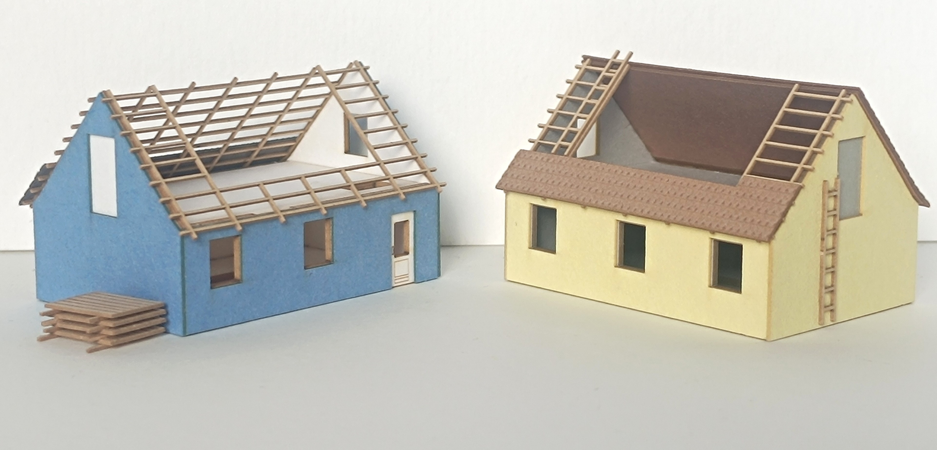 Laffont Z8721 - Einfamilienhäuser im Bau, 2 Stück, mit Bretterstapel