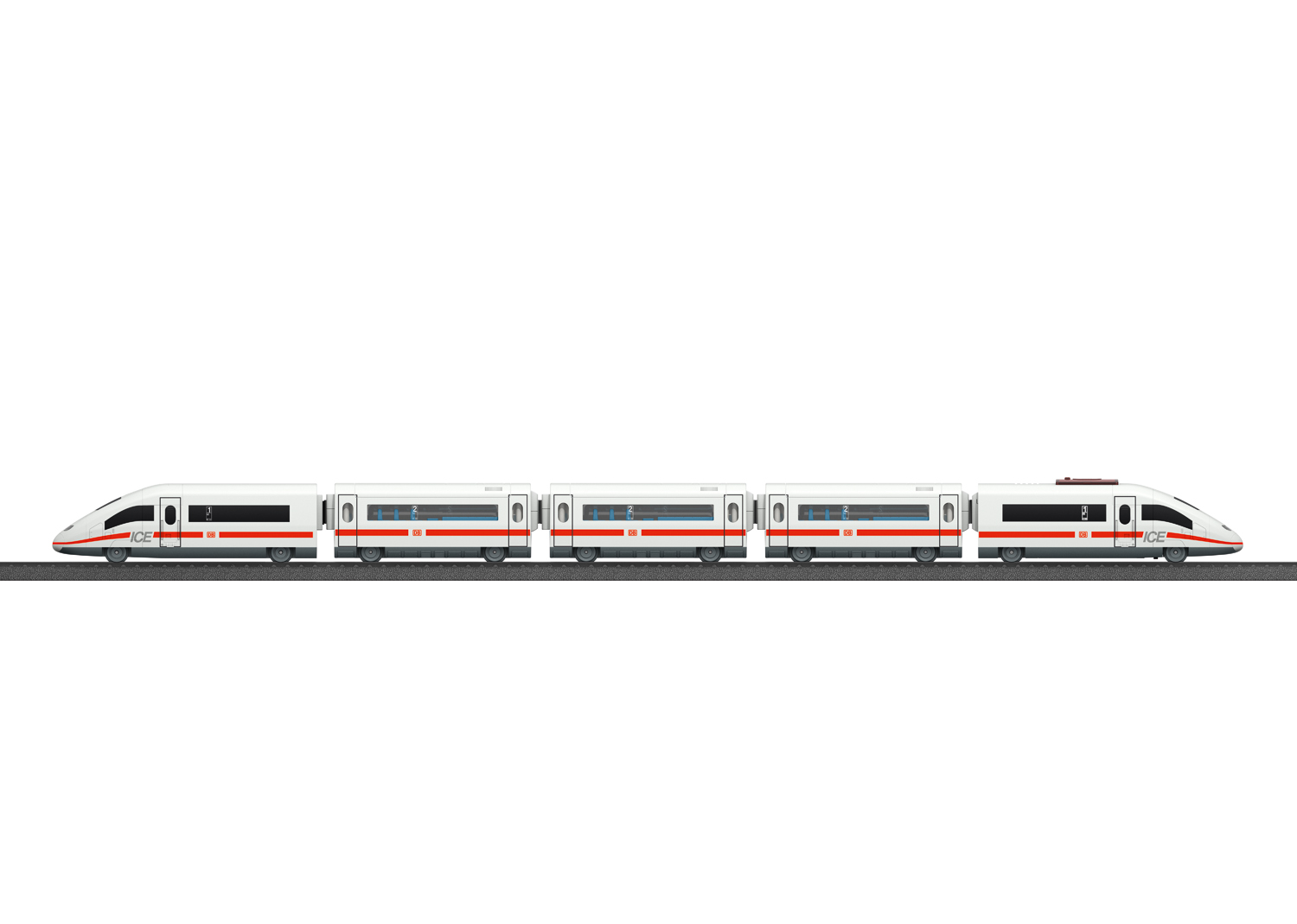 Großes VorbildBahnhöfe und das Einfahren von Zügen bringen Kinderaugen zum Leuchten. Das kann nun auch im Kinderzimmer passieren, denn die Märklin my world Startpackung “ICE 3” enthält einen 5-teiligen Hochgeschwindigkeitszug mit 63 cm Länge, der mit seinem schnittigen Design über die selbst zusammengesteckte Strecke rast. Die abnehmbaren Dächer der drei Zwischenwagen sorgen für viele Spielmöglichkeiten. Die detailreiche Gestaltung des Schnellzugs orientiert sich am Original und wird Fan-Herzen höherschlagen lassen. Die verschiedenen Weichen bieten noch mehr Spielraum beim Zusammenbau. Stück für Stück entstehen großartige Streckenverläufe durch das Spielzimmer, die sich mit Sets separat erhältlicher Kunststoffgleise noch erweitern lassen. Das Zusammensetzen der einzelnen Teile hilft dabei, die motorischen Fähigkeiten und das Verstehen von Zusammenhängen zu schulen.Volle Kontrolle mit dem Märklin Power Control StickDer kabellose Märklin Power Control Stick kann von Kindern mit nur einer Hand bedient werden. Damit lässt sich der Zug vorwärts und rückwärts in jeweils drei Geschwindigkeitsstufen fahren. Außerdem kann der Zug auf Knopfdruck am Control Stick verschiedene Soundeffekte abspielen und sein Zweilicht-Spitzensignal anschalten.Sicheres Spielen mit MärklinDamit auch schon die Kleinsten mit dem Modellzug von Märklin spielen können, steht Sicherheit an oberster Stelle. Die einzelnen Abteile der Züge sind über sichere Magnetkupplungen miteinander verbunden, die keine kleinen Einzelteile haben und einfach zu bedienen sind. Der motorisierte Triebkopf mit wiederaufladbarem Akku ist kindersicher gestaltet und daher das perfekte Spielzeug für den Einstieg in die Modellzugwelt ab 3 Jahren. Der Akku mit passendem Ladekabel und die Batterien für den Power Control Stick (2x AAA-Batterien) sind im Lieferumfang enthalten, sodass der Spielspaß direkt losgehen kann. Die einzelnen Schienenteile lassen sich ganz einfach zusammenstecken und alle Teile des Spielsets sind besonders robust gestaltet. Somit ist das Spielset perfekt für große und kleine Fans von Zügen und Modelleisenbahnen geeignet.