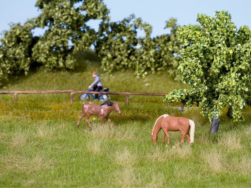 Realistische Landschaftsgestaltung! Die Natur+ Wiesen und Felder sind super-realistische Kompositionen aus verschiedenen hochwertigen, elektrostatisch verarbeiteten Grasfasern. Die Fasern werden in einem speziell entwickelten und patentierten Verfahren nacheinander aufgebracht. Diese Technologie und die Mischung aus verschiedenen Faserfarben und -längen ermöglichen ein verblüffend realistisches Aussehen. Als hauchdünner Träger für die Grasfasern dient ein eigens entwickelter transparenter Kleber, der dauerhaft flexibel bleibt.Durch diese spezielle Beschaffenheit kann man die Natur+ Wiesen und Felder einfach an die verschiedensten Oberflächenformen wie Hügel, Bahndämmer, Mulden o. ä. anpassen. Jede Packung enthält zudem 10 farblich harmonierende Grasbüschel für die realistische Ausgestaltung bzw. für die optimale Gestaltung von Übergängen. Die Anwendung ist denkbar einfach: Die Wiese wird entweder komplett eingebaut oder in kleine Stücke geschnitten oder gerissen und in die Landschaft eingeklebt.Mit der Natur+ "Wiese Sommer" lassen sich detailgetreue Felder realisieren, die für eine naturnahe ausgestalten Ihrer Modelllandschaft sorgen. Vorteile der Natur+ Wiesen & Felder Unterschiedlich lange Grasfasern (2,5 bis 12 mm) in unterschiedlichen Farben werden in einem speziellen Verfahren nacheinander aufgeflockt. Extra-dünne Trägerschicht aus flexiblem Spezialklebstoff Einfaches Verlegen auch auf unebenem Untergrund Sehr leicht zu verarbeiten (schneiden, reißen, kleben) Inklusive Grasbüschel für die realistische Ausgestaltung