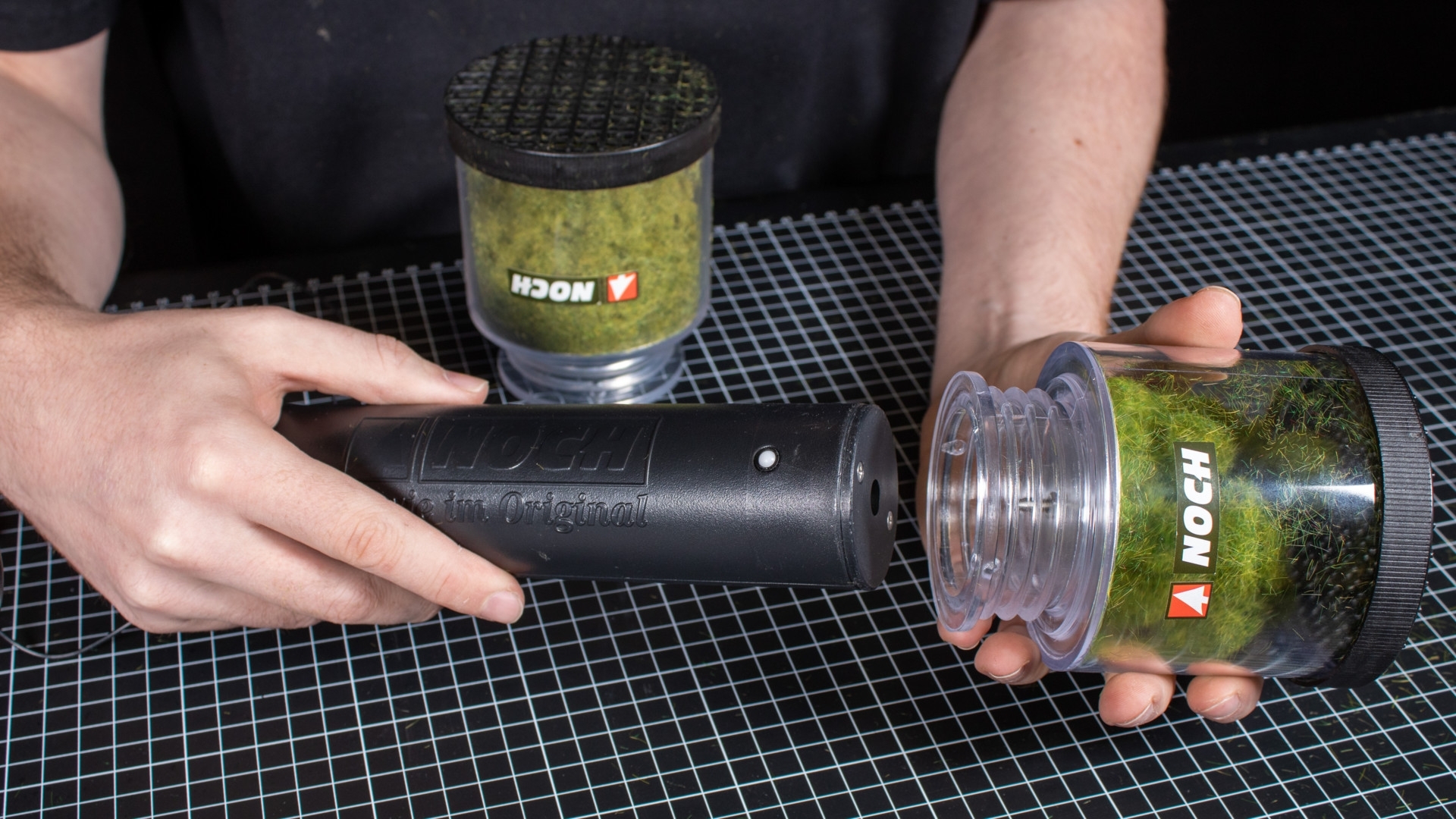 Der Standart Flock-Wechselbehälter von NOCH! Passend für Gras-Master 4.0 und Gras-Master 4.0 PROFI. Mit Bajonett-Verschluss für den schnellen Wechsel von Grasfasern “im Handumdrehen”. Der transparente Behälter verschafft zu jeder Zeit einen Blick auf die verbleibende Menge Grasfasern.