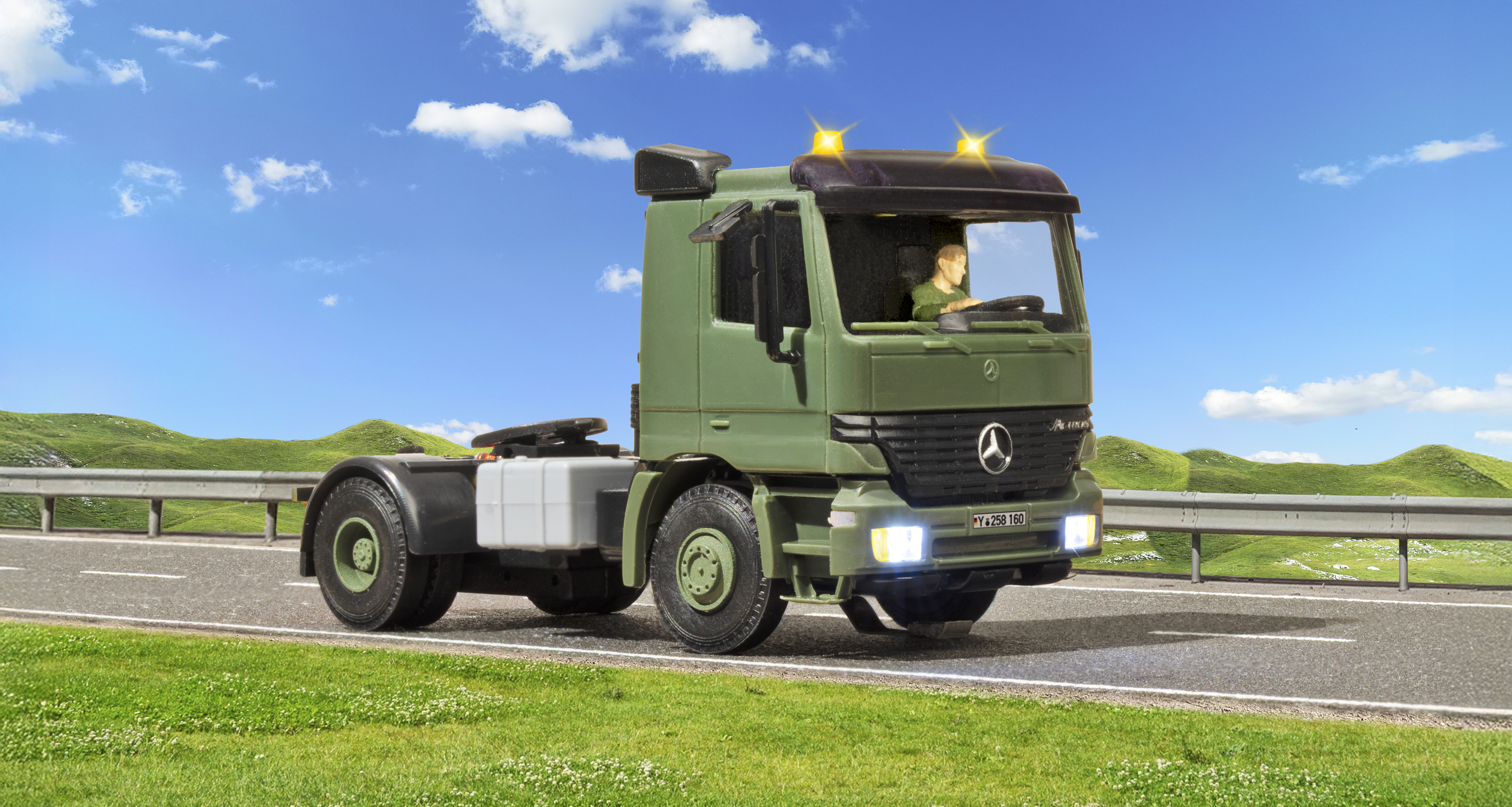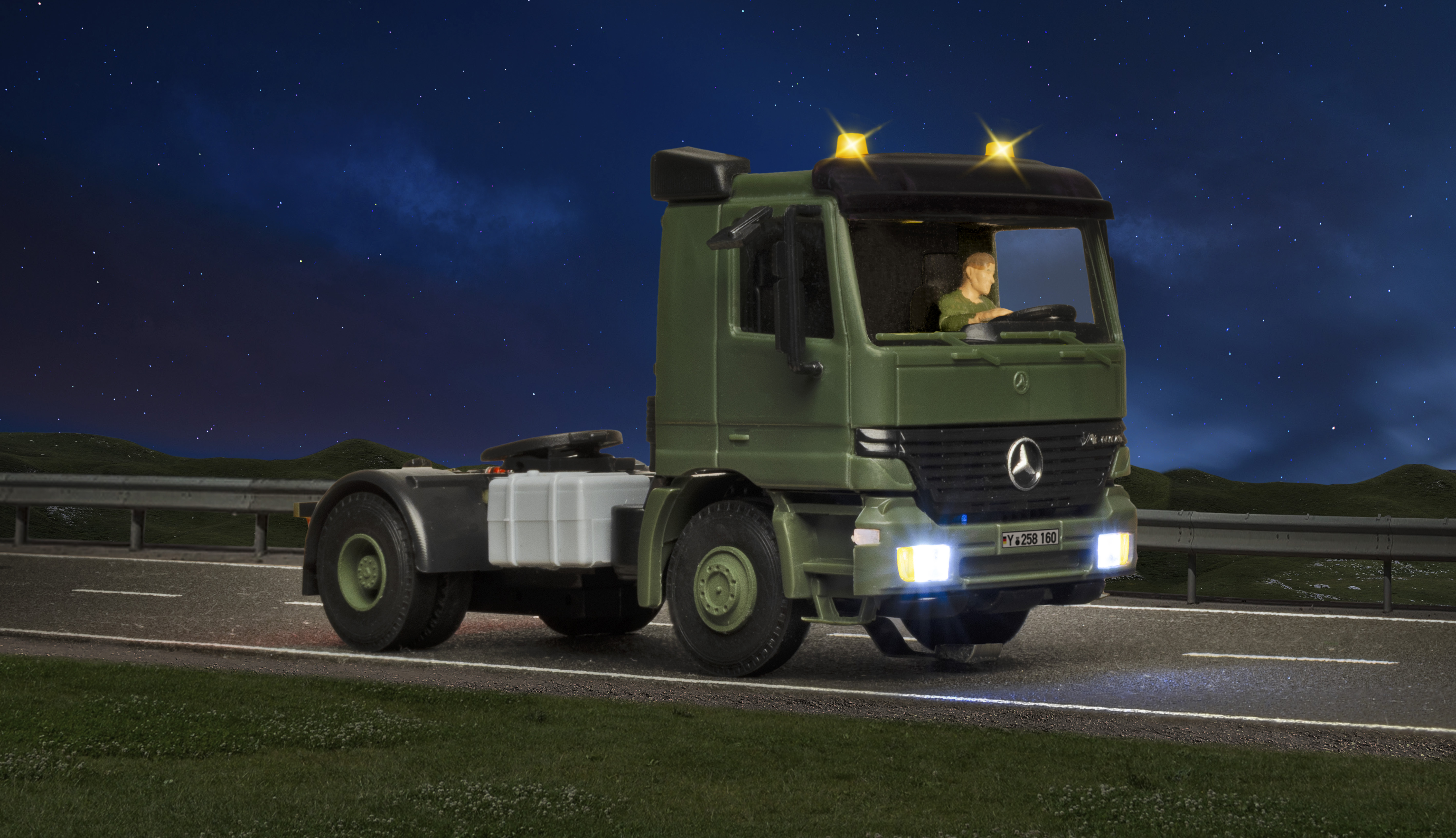 Viessmann 8160 - H0 MB ACTROS 2-achs Sattelschlepper mit Rundumleuchten, Militär, Basis, Funktionsmodell